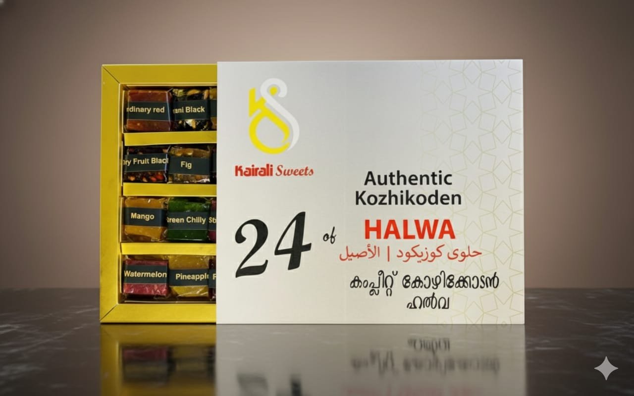 Experience the rich heritage of Kozhikode with our *24 Variety Premium Halwa Box* from Kairali Sweets. Each piece is crafted with the finest ingredients, offering a perfect blend of sweetness, texture, and traditional flavor. From fruity delights like *Mango, Pineapple, and Watermelon* to exotic selections such as *Green Chilli, Fig, and Dry Fruit Black*, this box is a treat for every palate.