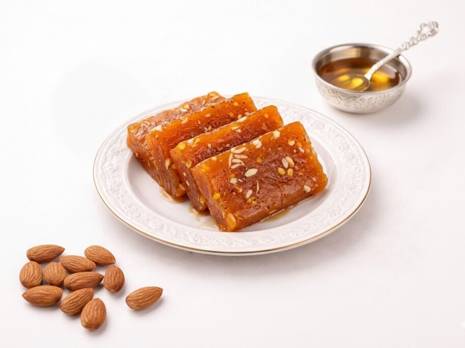 Experience the timeless tradition of Kerala’s most loved sweet — *Kozhikoden Ghee Red Halwa*.