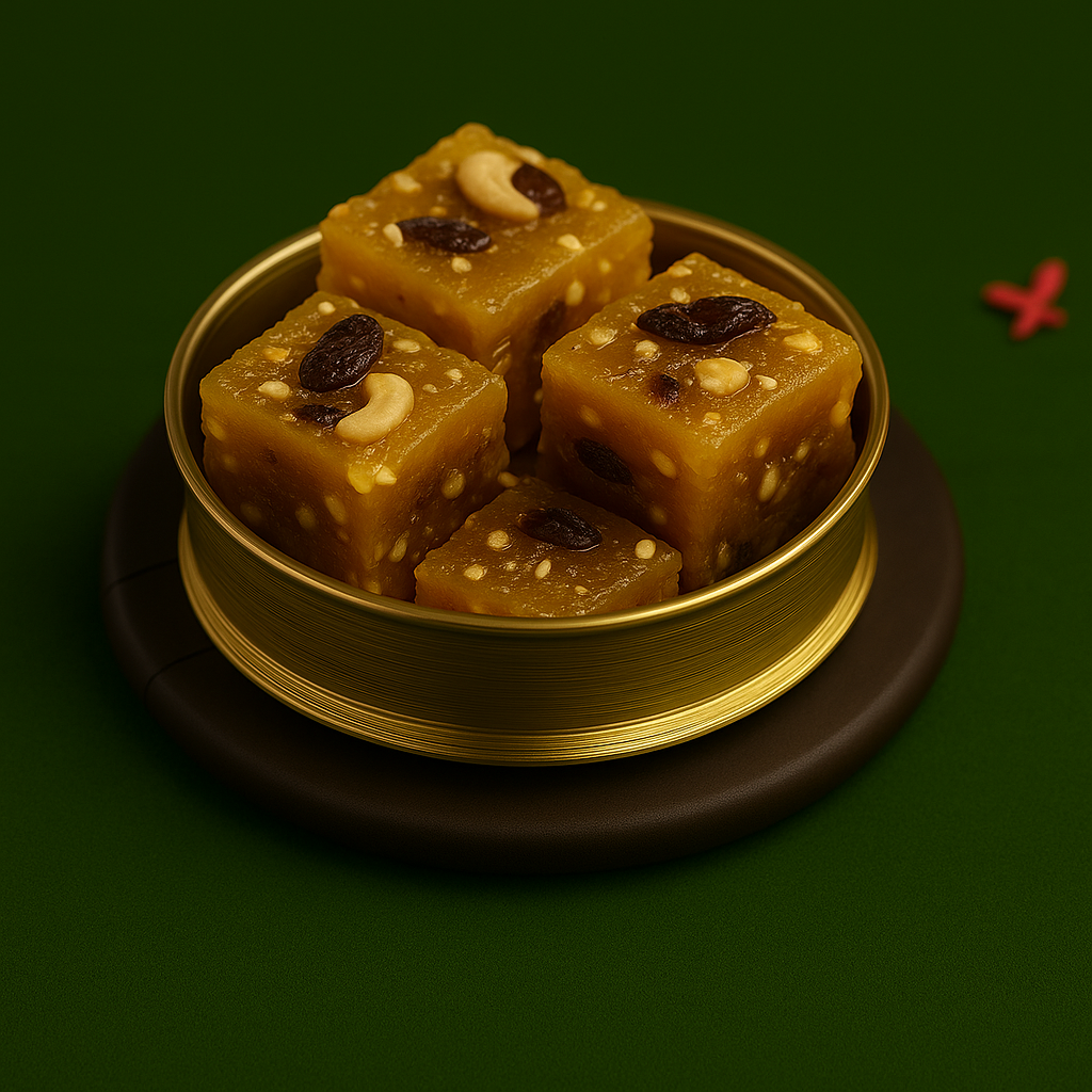 Slow-cooked to perfection using authentic methods, this halwa offers both indulgence and nourishment—making it an ideal choice for festivals, gifting, or simply pampering your sweet cravings. Every piece is loaded with cashews, almonds, raisins, and figs, ensuring a delightful bite full of richness and aroma.