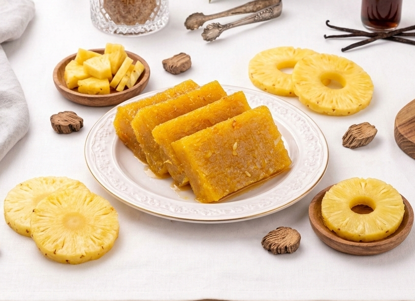 Each bite offers a soft, glossy, melt-in-mouth texture combined with the natural aroma of pineapple, making it a favourite choice for celebrations, gifting, and everyday indulgence.